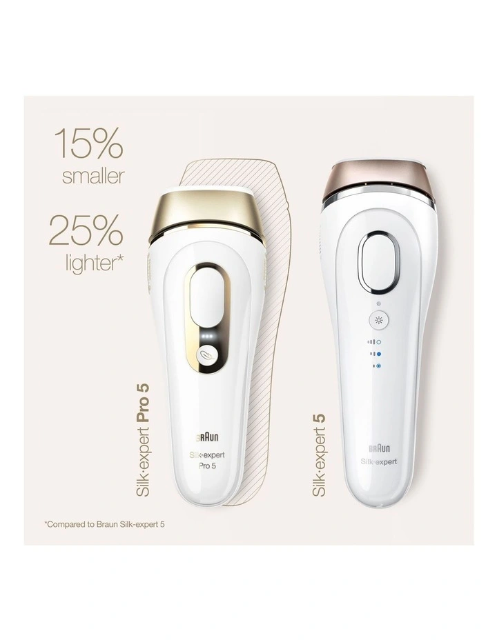 Silkexpert Pro is Brauns latest generation IPL. Silkexpert Pro 5 is the safe, fast and most efficient IPL* for permanent hair reduction in just 4 weeks*. The safe IPL technology, clinically tested and dermatologically accredited as skin safe by an international skin health organization (Skin Health Alliance). It automatically and continuously adapts to your skin tone to ensure optimal balance between efficacy and safety for visible permanent hair removal. The fast IPL, its 2 times faster than previous Silkexpert 5: both lower legs can be treated in less than 5 minutes. It includes a precision head to tackle the smaller areas such as the face, bikini line or underarms. Compact design, 15 percent smaller and 25 percent lighter, for easy handling and effortless treatment. 400,000 flashes, 30 percent more than previous Silkexpert 5.