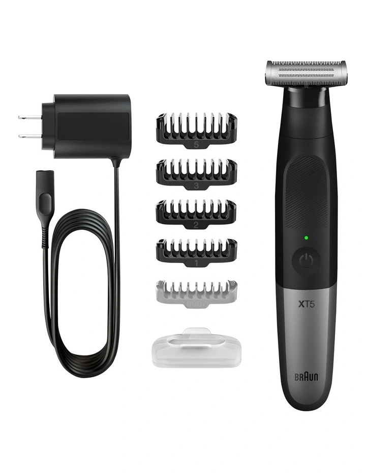 Braun Series XT5 is a trimmer, body groomerand electric razor for men, all in one tool. Its 4D-Blade delivers an easy andcomfortable shave that is gentle on the skin. 100% waterproof, this trimmer andshaver can be used wet or dry and its metal blade is built to last up to 6months*. The slim design and anti-slip grip make it surprisingly easy tohandle.