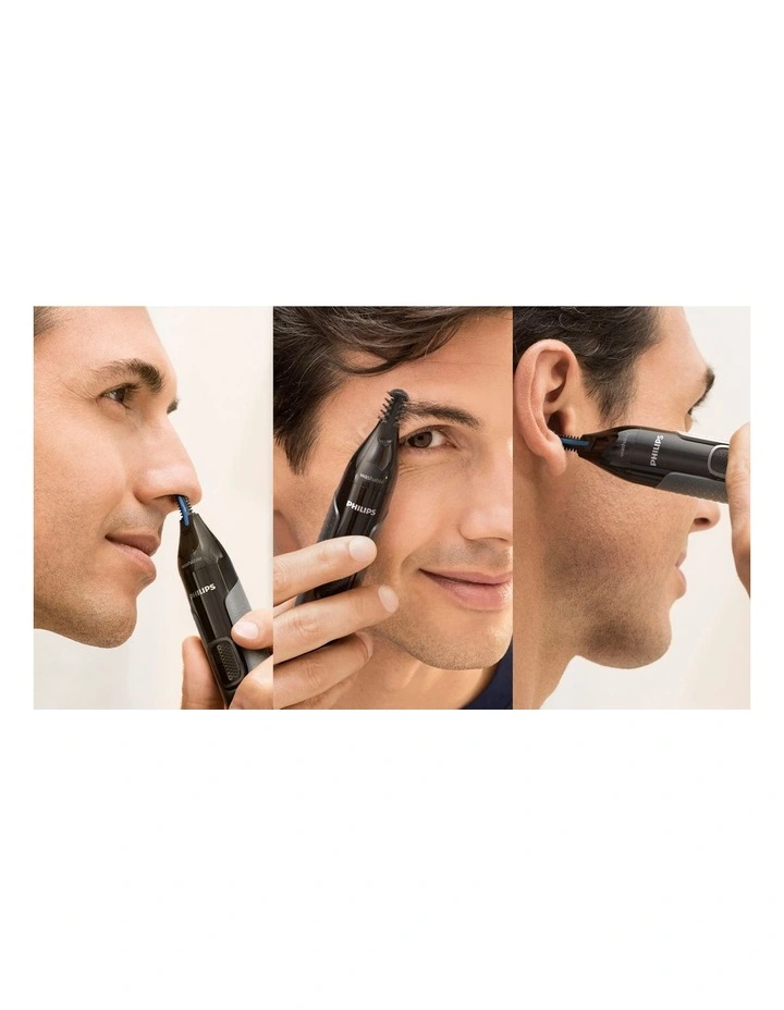The Philips nose trimmer series 3000 comfortably trims nose, ear and eyebrowhair. The new PrecisionTrim technology & the Protective Guard system have beendesigned to provide an easy and efficient trim without all the pulling and tugging.