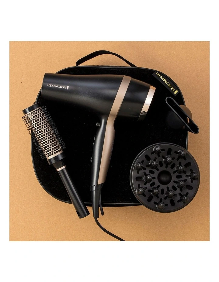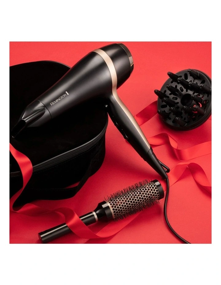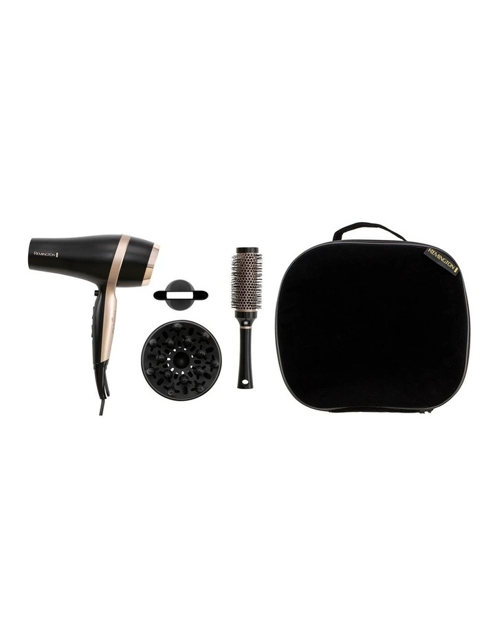 Inside the Premium Storage Bag theres a Round Brush, Fast Dry Concentrator and Diffuser, to help you create your individual style. The 2100W DC Dryer gives you fast and powerful drying and the Ceramic Ionic Grille delivers even heat distribution and anti-static, for smooth results every time.