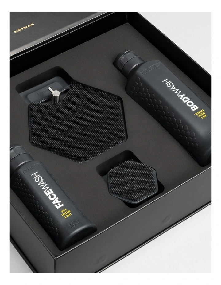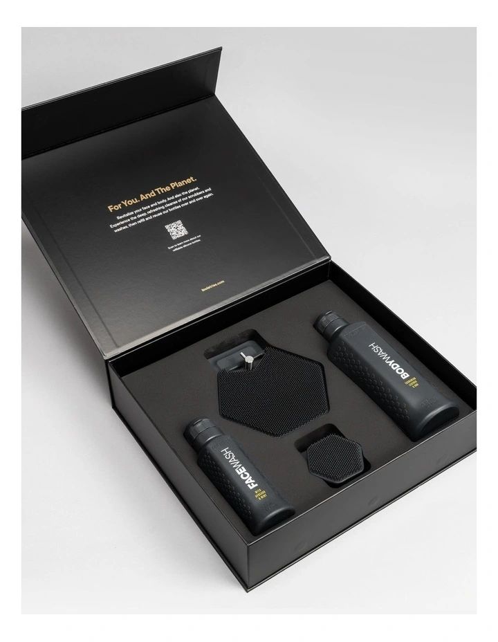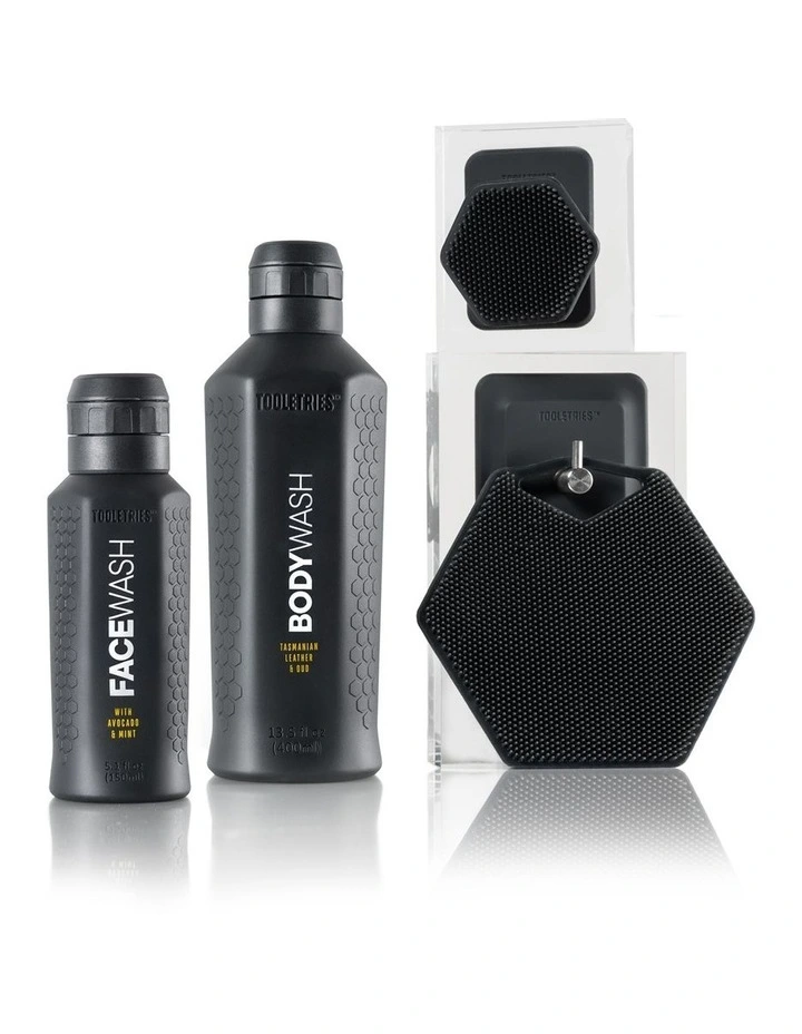 Congratulations. This bountiful bundle features everything you need to invigorate your mind, body, and soul and beautify your bathroom.Experience the deep, satisfying cleanse of our 100% silicone Body and Face Scrubbers, together with the fresh Aussie-landscape-inspired scents of our eco-friendly, refillable washes.